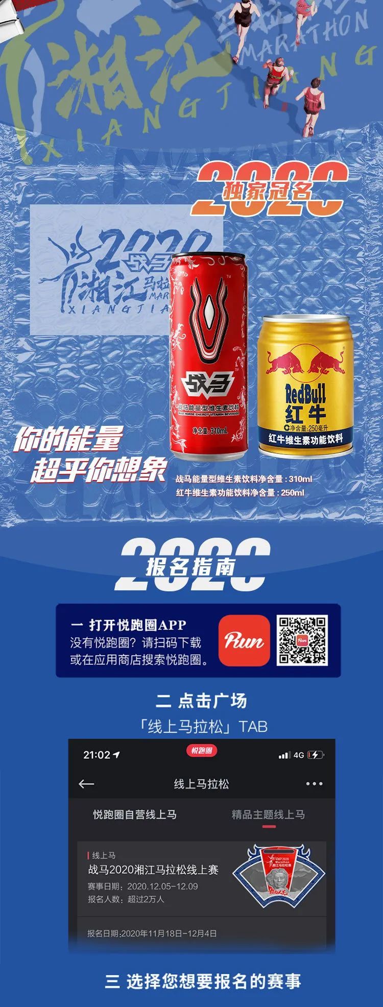 ? 報名須知:報名時需選定報名項目,并仔細閱讀《戰(zhàn)馬2020湘江馬拉松線上賽常見問題》和《免責聲明》